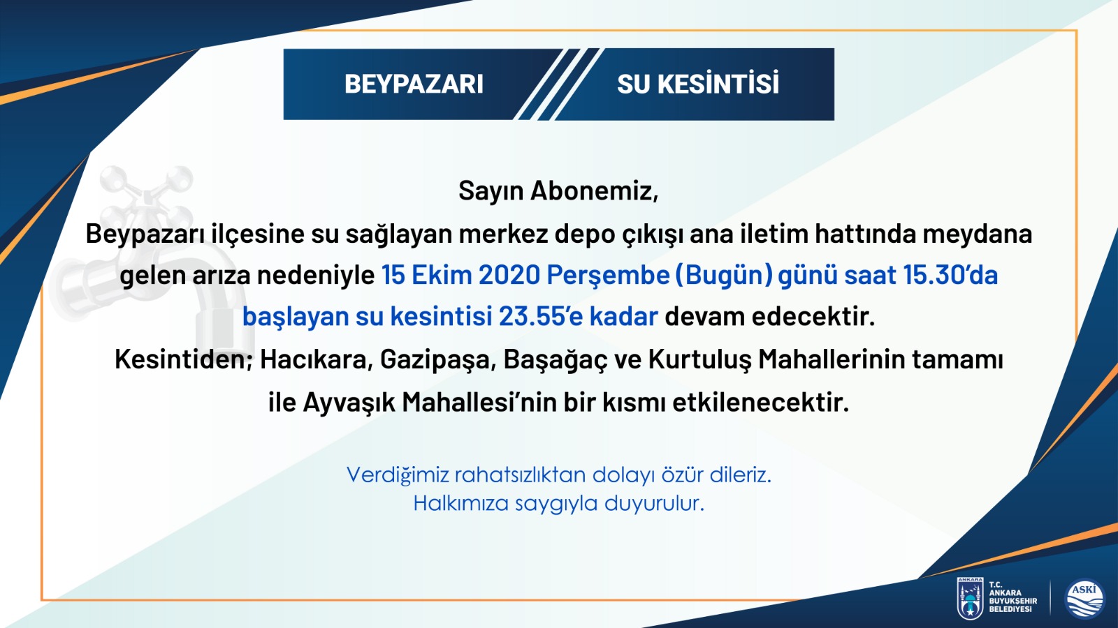 beypazari su kesintileri ankara aski su arizalari kesintileri