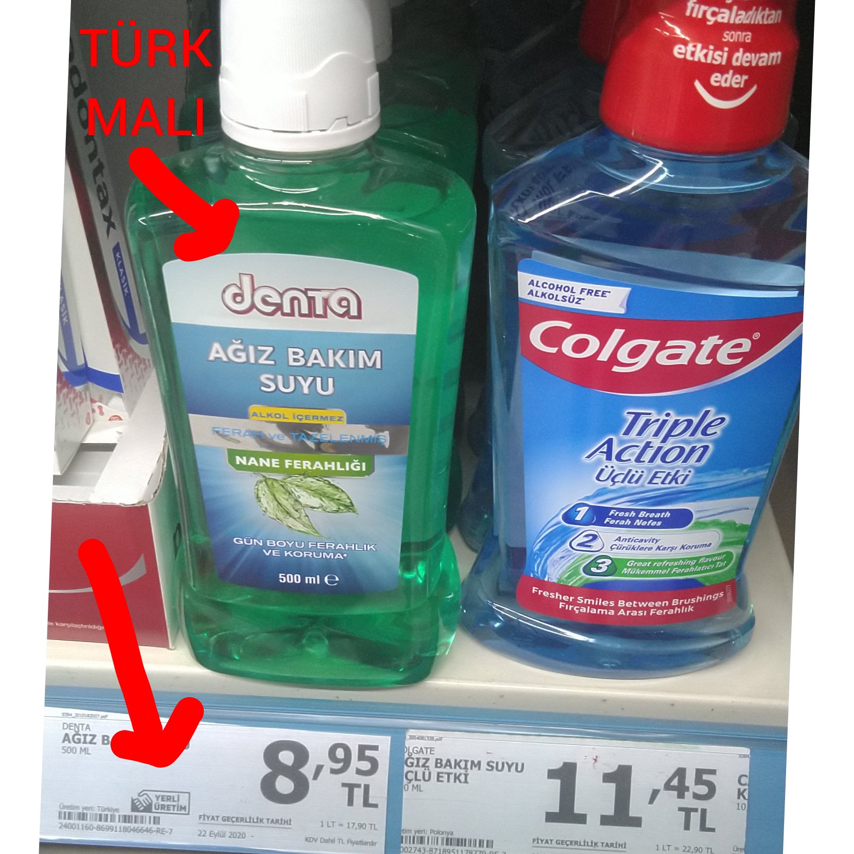turquality on twitter arkadaslar turkiye de maalesef icinde buyuk bir teknoloji olmamasina ragmen agiz bakim suyu konusunda uretim yoktu listerin colgate oral b polonya ingiltereden ithal geliyordu a101 marketler denta markasiyla uretime