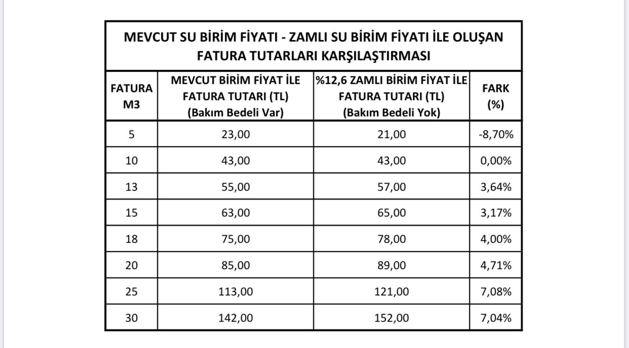 istanbul da su birim fiyatlari 2021 kartal 24